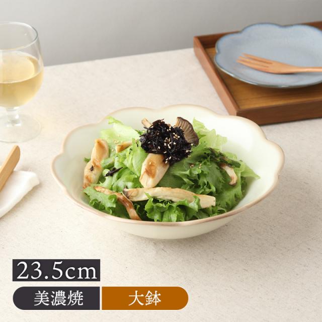 大鉢 23.5cm 嶺花 りょうか ベージュ 花型 和食器 ボウル 鉢 お皿 皿 食器 大鉢 盛り鉢 盛り皿 煮物鉢 サラダボウル 麺鉢 丼ぶり どんぶり カフェ風 和カフェ おしゃれ