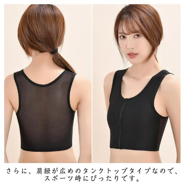 | 苦しくないのにしっかり胸を抑えるタンクトップタイプのスポーティーインナ。2枚セット 背中には通気性に優れたメッシュ素材を使用。 フラットな生地で着用感も良く、胸をしっかりと覆ってスッキリ収納してくれます。 さらに、肩紐が広めのタンクトップタイプなので、スポーツ時にぴったりです。 フロントファスナー仕様ので使い勝手が良いです。 バストをペタっとフラットにメイクするから、ボリュームが気になる方や、 浴衣やお着物の下着として、コスプレ時の胸つぶしとしてなど、コーディネートを格上げしてくれる1枚です。 | |