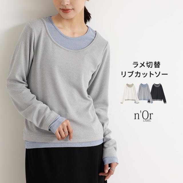 カットソー レディース Tシャツ ロンT プルオーバー 長袖 ラメ 配色 切替 【TP】 トップス リブ リブ生地 クルーネック Uネック n'OrLABEL ノア—ルレーベル 大人女子 大人可愛い お洒落可愛い 大人カジュアル ベーシック ニュアンス ラフ エフォートレス オフィスカジュアル ミディ丈 ミドル丈 切り替え 無地 異素材MIX レイヤード 重ね着 フェイクレイヤード おうちで洗える 春 秋 冬 カジュアル シンプル ナチュラル キレカジ セレカジ 可愛い系 上品 きれいめ Sサイズ Mサイズ Lサイズ LLサイズ 3Lサイズ XLサイズ ぽっちゃり 大きいサイズ プラスサイズ 10代 20代 30代 40代 50代 60代 女子会 オフィス 通勤 通学 お買い物 お出掛け 旅行 リゾート レジャー おしゃれ お洒落 トレンド 流行 デート ショッピング 散歩 osharewalker オシャレウォーカー おしゃれうぉーかー ホワイト 白 アイボリー グレー 灰色 ブラック 黒[ID]13tm0d6[n'OrLABELラメ切替リブカットソー]
