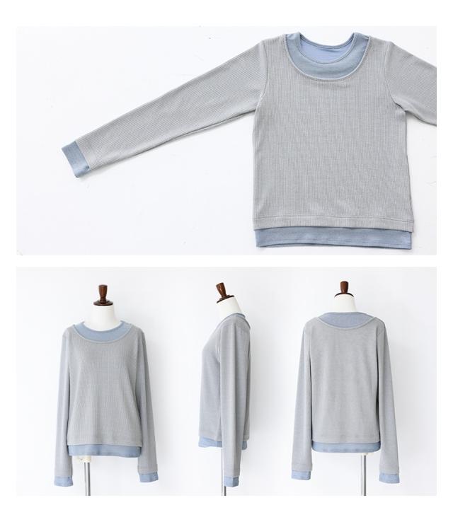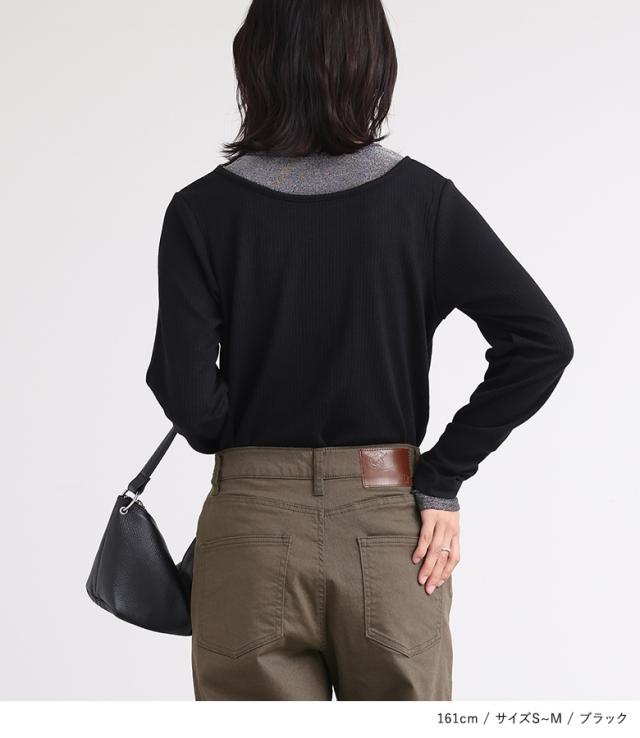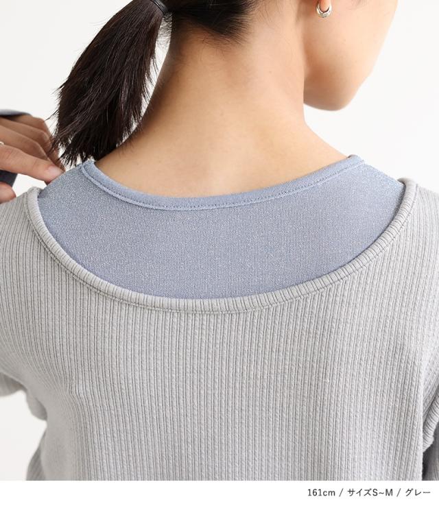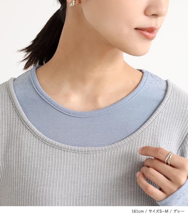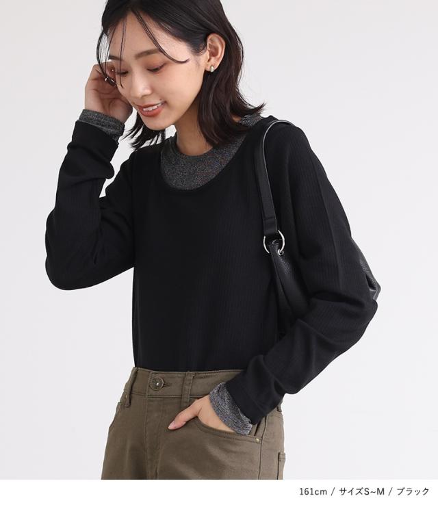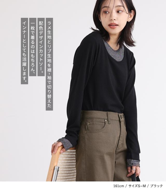 『ラメ切替リブカットソー』※メール便可※【10】[カットソー レディース Tシャツ ロンT プルオーバー 長袖 ラメ 配色 切替 重ね着 レイヤード インナー オシャレウォーカー]