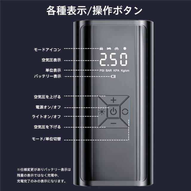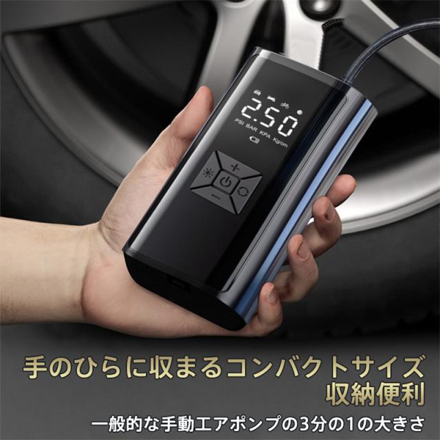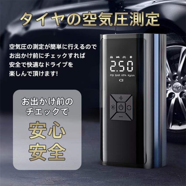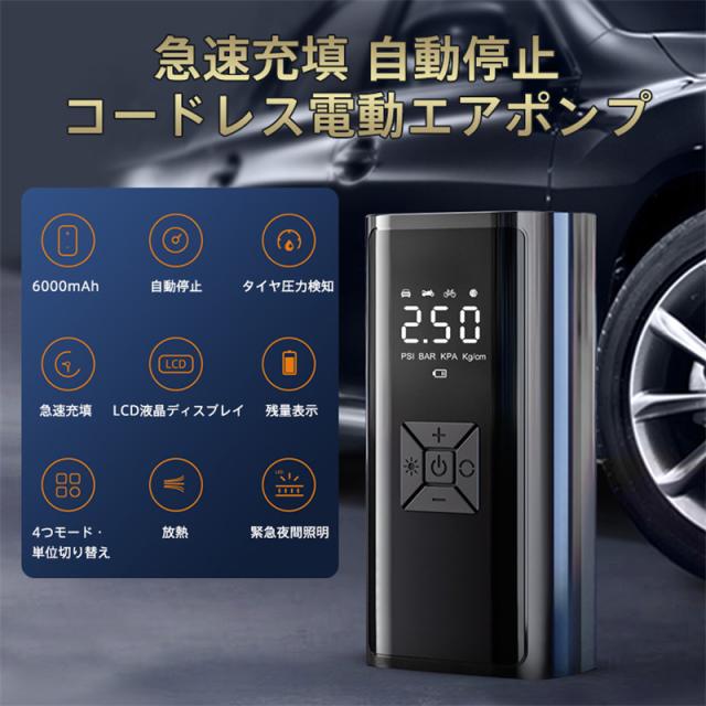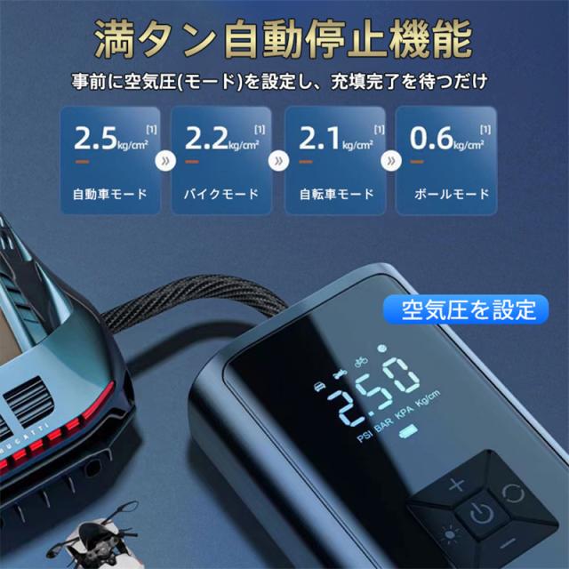 電動 空気入れ 自動車 自転車 充電式 急速充填 コードレス 車 バイク エアーポンプ 自動停止 タイヤ圧力検知 小型 浮き輪 ボ