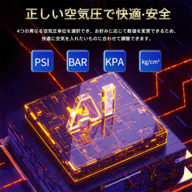 車、バイク、自転車、ボール4つのインフレモード、数値の設定をしなくても、自動的に最適な設定で空気を入れる