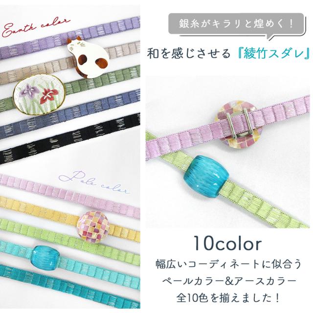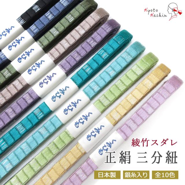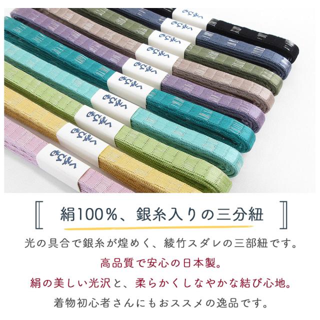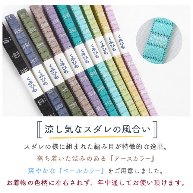 【10本までメール便送料無料】正絹 スダレ 三分紐 日本製 帯締め 絹100% 伝統的工芸品 巾10mm 1cm 約122cm 3分紐 10色 くすみ 渋み ペール アースカラー 和装小物 着付け小物 レディース 女性 通年用 お洒落 カジュアル 着物 色無地 小紋 紬 デニム着物 浴衣 夏着物