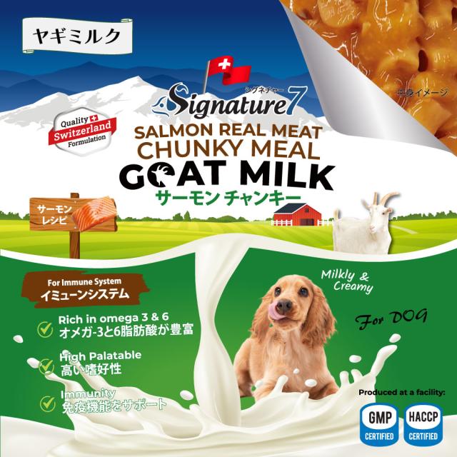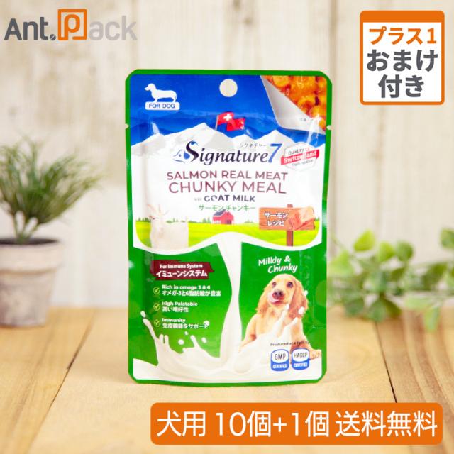 シグネチャー7 ゴートミルク サーモンチャンキー イミューンシステム 犬用 80g×10個+おまけ1個