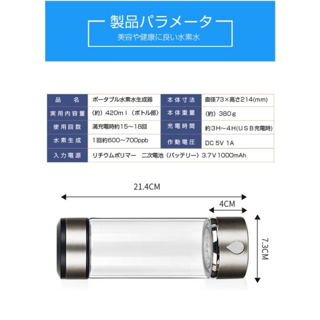 水素水生成器 ポータブル 携帯便利 美容 健康に効き
