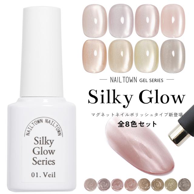超微粒 マグネットネイル ネイルタウンジェル ポリッシュタイプ シルキーグロウシリーズ 全8色セット 約5ml ボトルジェル 4ミクロン 全色セット