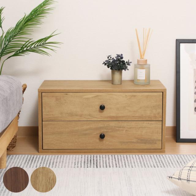 表面はプリント紙化粧繊維板を使いリアルな木目を再現しています。シンプルで飽きの来ないデザインでお部屋に馴染みやすく、コンパクトなサイズ感のため、棚の上などに置いてもご使用いただけます。