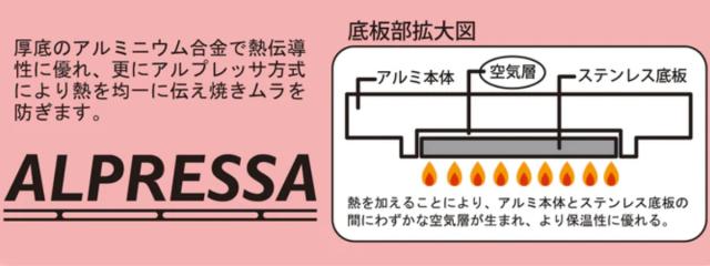 ●アルプレッサ構造の特殊な鍋底により、熱を均一に伝えます。