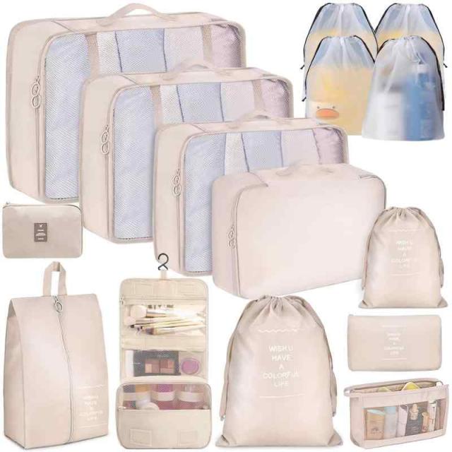 Newfashion トラベルポーチ 8点セット アレンジケース パッキング 旅行用 (ベージュ)