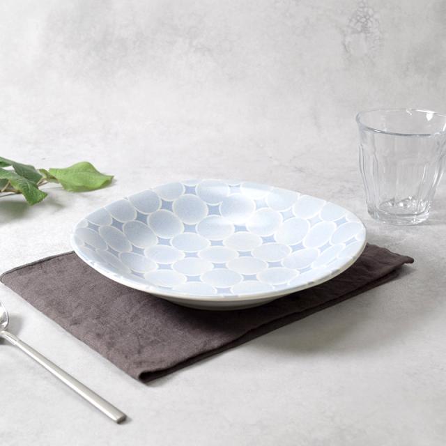 深皿 21.5cm アクア・セル ロマン型 和食器 おしゃれ モダン 和モダン シンプル シック レトロ プレート お皿 皿 食器 中皿 取り皿 ケーキ皿 サラダ皿 デザートプレート パン皿