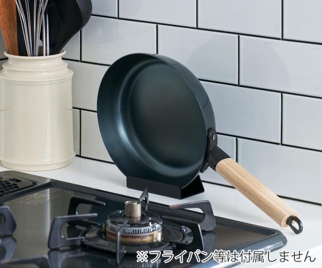 like-it(ライクイット)PAN-17「オーブンでも使える鉄フライパン20cm深型」専用のフライパンスタンドです。コンロ脇に立てておけば場所をとらず、サッと使えて効率的です。しっかり立てられます。