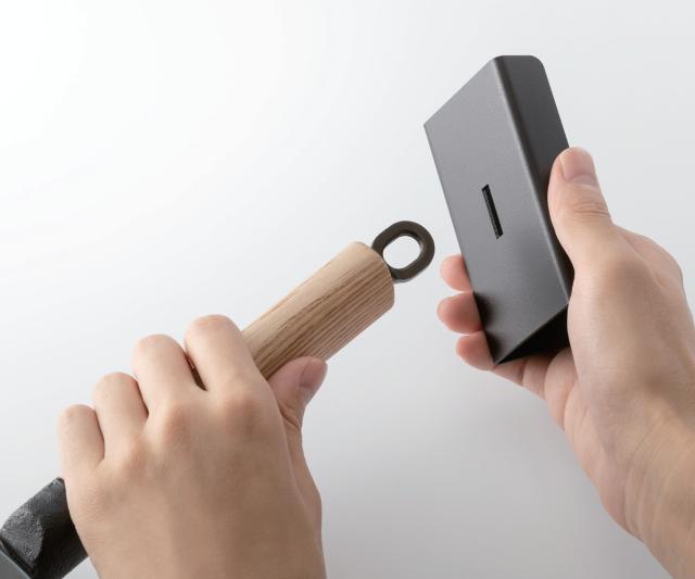 スタンド底面の溝にハンドル先端のボルトをはめて、ドライバーのように回すと、ハンドルを着脱することができます。