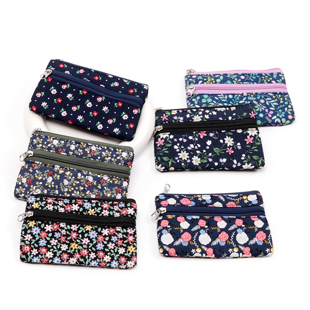 小銭入れ ミニポーチ 布製 ファスナーポーチ ミニ財布 コインケース 小物入れ 二重ファスナー付き ランダム発送 (1ヶ)