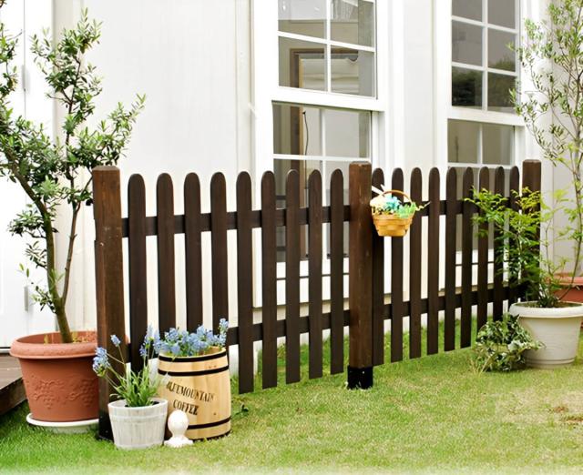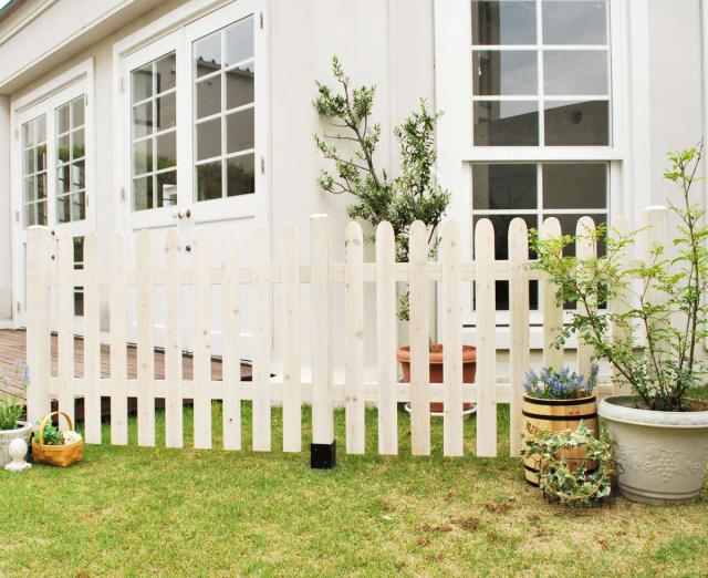 お庭だけでなく、家全体を引き立てる存在感のある天然木製ピケットフェンスです。ナチュラルテイストやフレンチカントリーなお庭にも最適です。