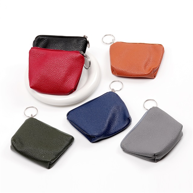 小銭入れ ミニポーチ PUレザー ミニ財布 コイン財布 コンパクトウォレット ファスナー付き キーリング付き ランダム発送 (1ヶ)