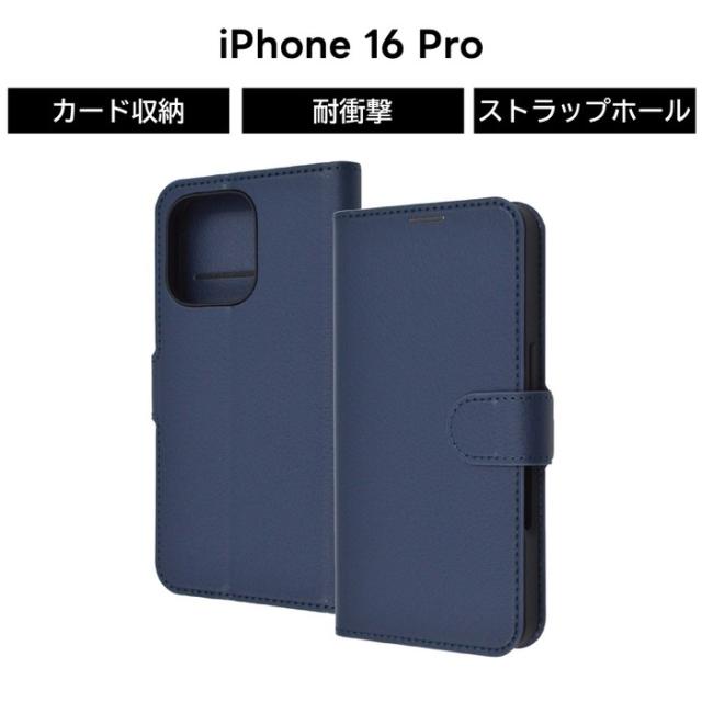 iPhone 16 Pro ケース 手帳型 マグネット iPhone16Pro アイフォン 16プロ 耐衝撃 シンプル レザー ネイビー ソフト ハード スマホケース カード収納 iPhone 16Pro iPhone16 Pro