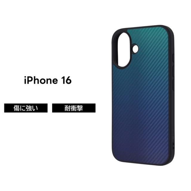 iPhone 16 ケース 耐衝撃 シンプル iPhone16 アイフォン16 耐衝撃ケース 傷に強い 衝撃吸収 カーボン調 ブルー ソフト ハード スマホケース