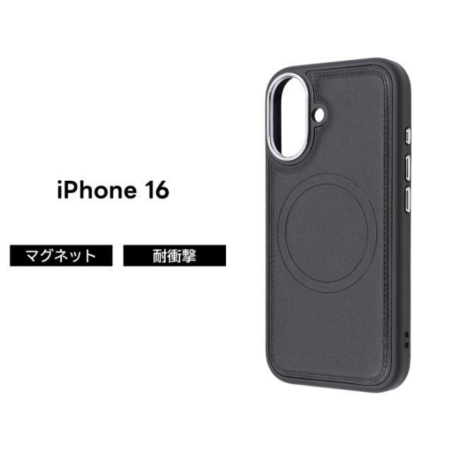 iPhone 16 ケース MagSafe対応 レザー iPhone16 アイフォン16 ワイヤレス充電 強力磁石 マグネット ブラック ソフト ハード スマホケース
