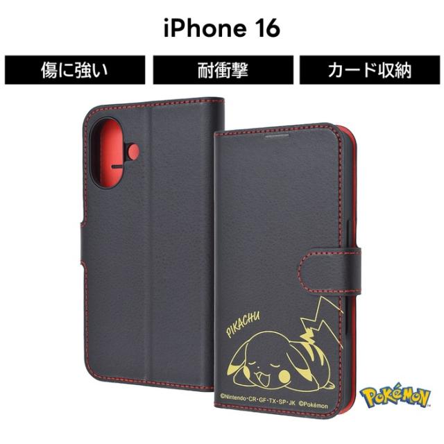 iPhone 16 ケース 手帳型 ピカチュウ iPhone16 アイフォン16 ポケモン キャラクター ポケットモンスター耐衝撃 ソフト ハード スマホケース かわいい 可愛い カード収納