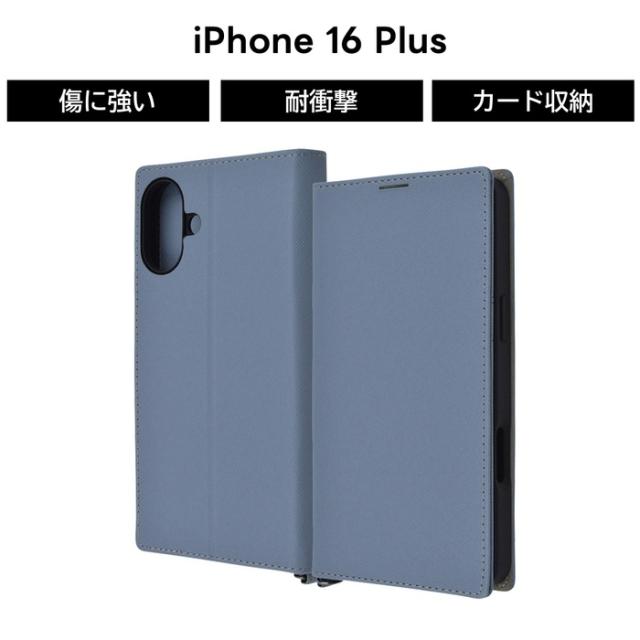 iPhone 16 Plus ケース 手帳型 耐衝撃 iPhone16Plus アイフォン 16プラス シンプル おしゃれ レザー ブルー ソフト ハード スマホケース カード収納