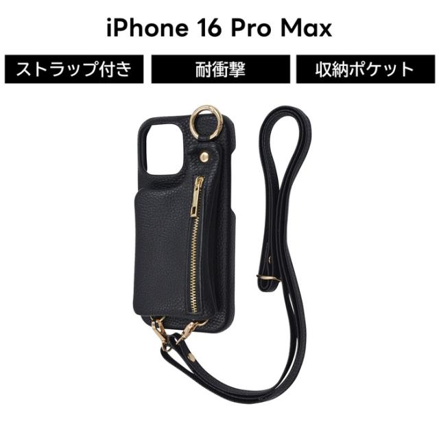 iPhone 16 Pro Max ケース ショルダー iPhone16ProMax アイフォン 16プロマックス ストラップ ポーチ ブラック ソフト ハード スマホケース
