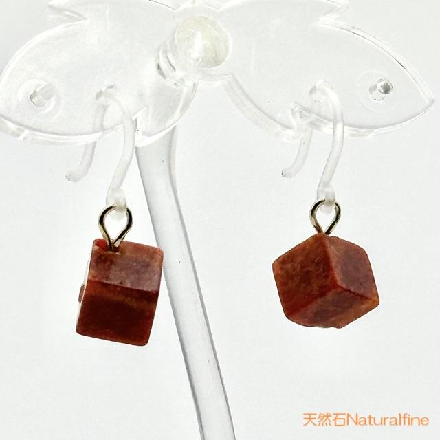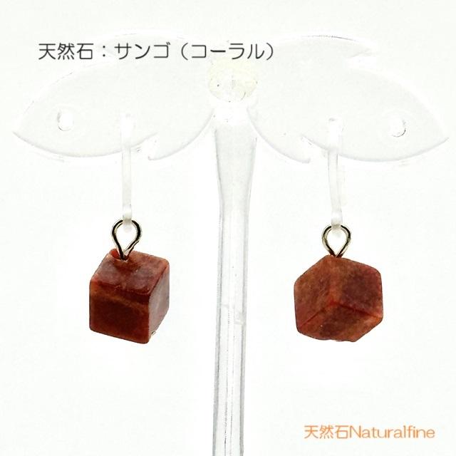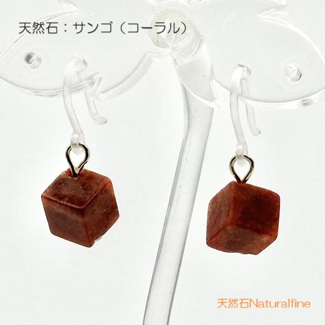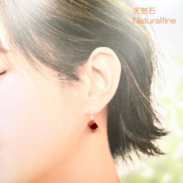 こちらは、天然の珊瑚(コーラル)のピアス(イヤリング)です。キューブ型の1粒ピアスでシンプルですが、まるでもみじのような色合いで秋らしいです。