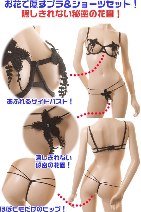 お花で隠すブラ&ショーツセット!