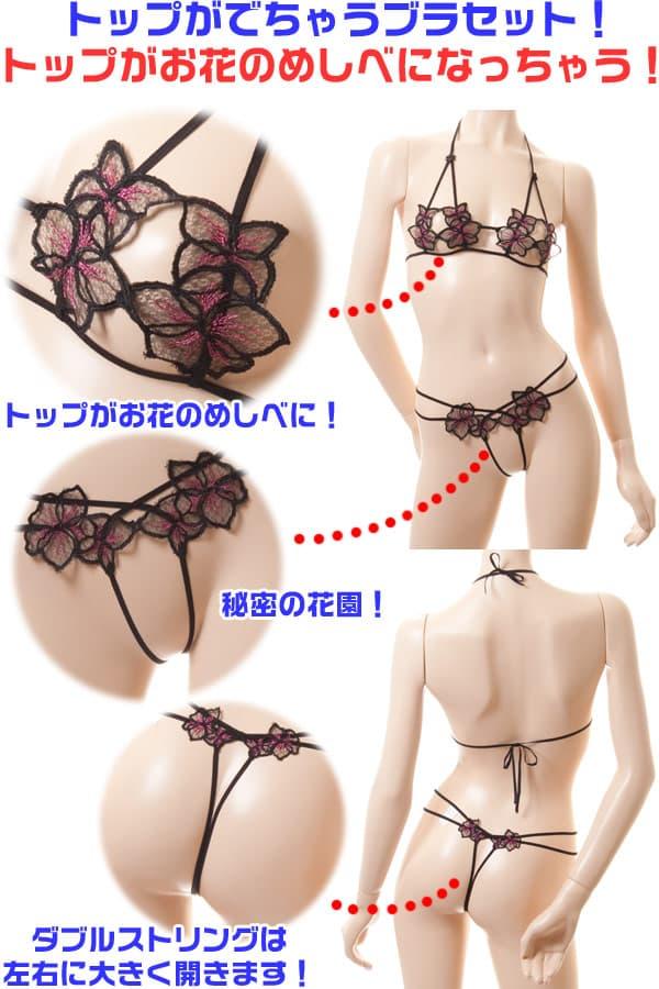 トップがでちゃう!お股は2本のヒモだけ!かわいく過激なブラセット!