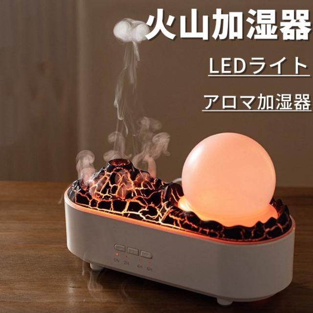 火山加湿器 アロマ ディフューザー 3色LEDライト アロマ加湿器 小型加湿器 USB充電式 卓上加湿器 超音波加湿器 大容量 おしゃれ 静音 乾燥対策