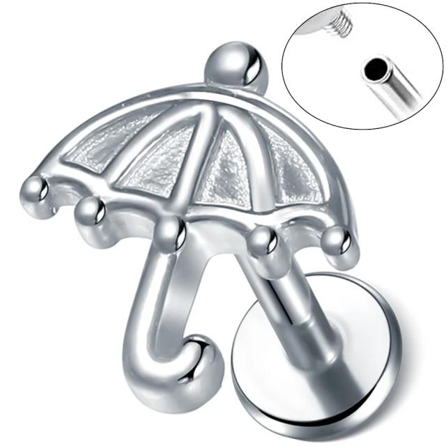 傘(かさ)のモチーフを逆ネジタイプの16ゲージのシャフトにセットしたステンレス製のラブレット型ボディピアス。アンブレラモチーフのボディーピアスは雨の時に気分を上げてくれるオシャレなアイテム。