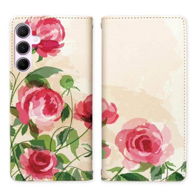 Galaxy A55 5G SCG27 SC-53E ベルトなし 手帳型スマホケース スタンド 【薔薇絵画デザイン】マグネットでピタッと閉じる スマホケース スマホカバー 手帳ケース 手帳カバー