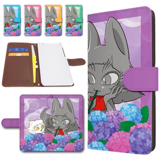 arrowswe2スマホケース手帳型 カメラ穴あり ネコ 花柄 紫陽花 あじさい アニメ キャラクター 猫 ねこ おしゃれ スマホケース arrows we2 ケース 手帳型 アローズウィー2 アロウズウィー2 fcg02 手帳ケース 手帳 カバー