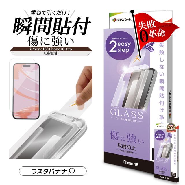 iPhone16 16 Pro 15 ガラスフィルム 平面保護 アンチグレア 反射防止 傷に強い 干渉しない 貼付革命 瞬間貼り ガイド枠付き ラスタバナナ