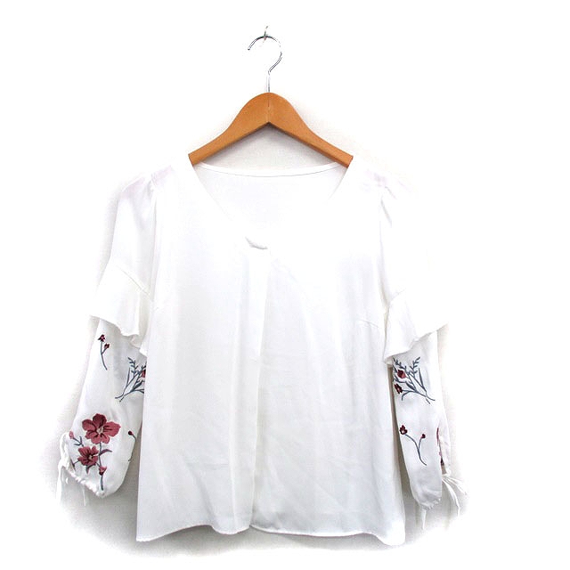 【中古】ミッシュマッシュ MISCH MASCH ブラウス シャツ 七分袖 Vネック 刺繍 花 38 ホワイト 白 /KT24 レディース