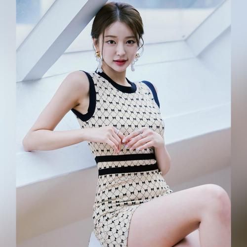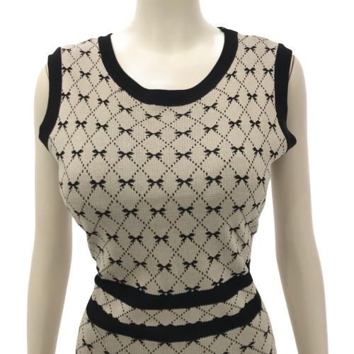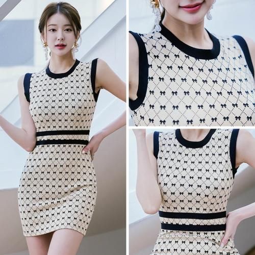 リボン柄ノースリーブニットワンピース(キャバドレス・CABARETDRESS)。