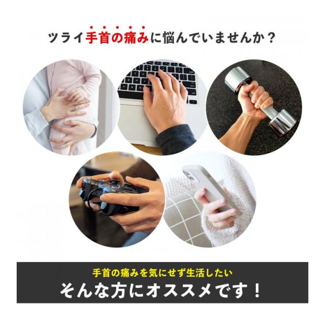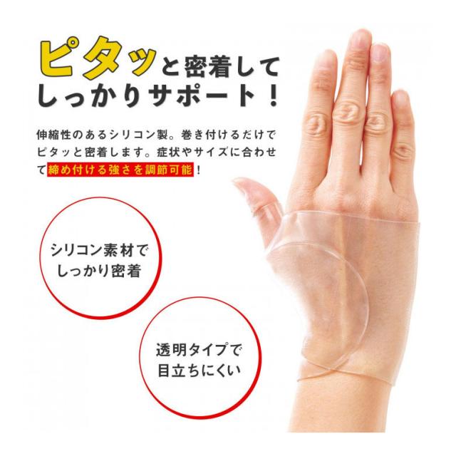 伸縮性のあるシリコン製。親指にはめて巻き付けるだけでピタッと密着し、気になる手首の痛みをしっかりサポートします。