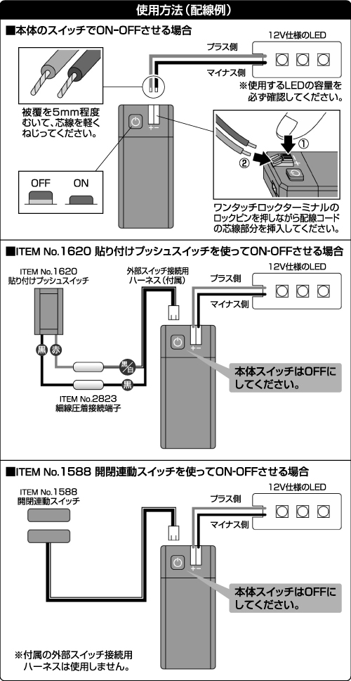 ■工具不要!LED接続用ワンタッチロックターミナル採用