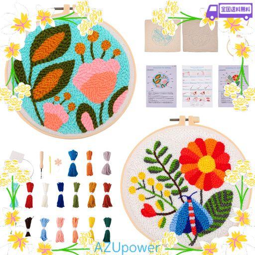 BEADTHOVEN パンチニードル刺繍キット 初心者 2セットパック かわいい花柄 ニードルパンチ 刺しゅう フリーステッチングニードル ペン刺繍パンチニードル クロスステッチキット 針仕事工芸…
