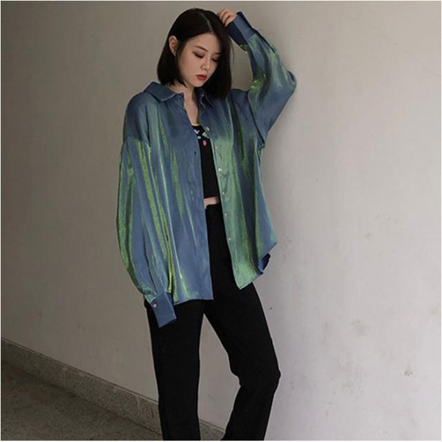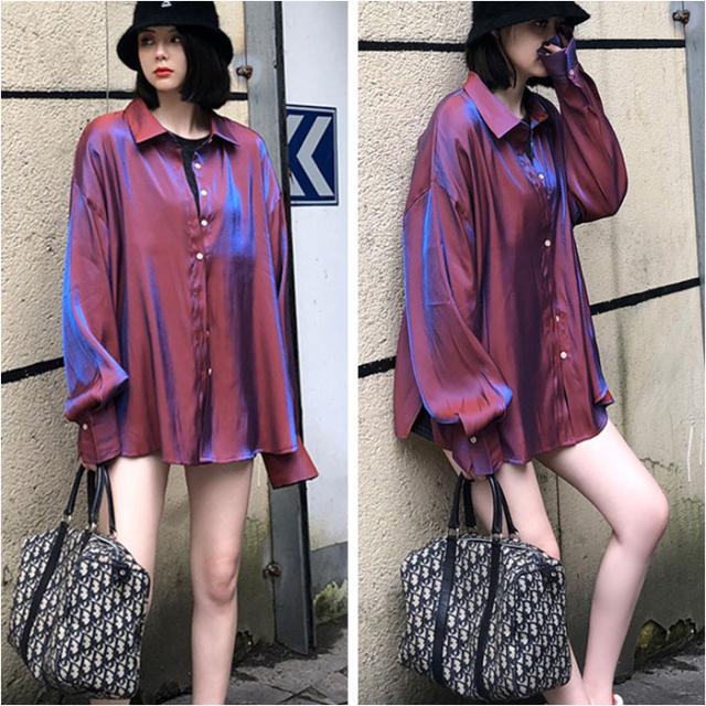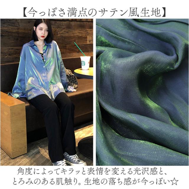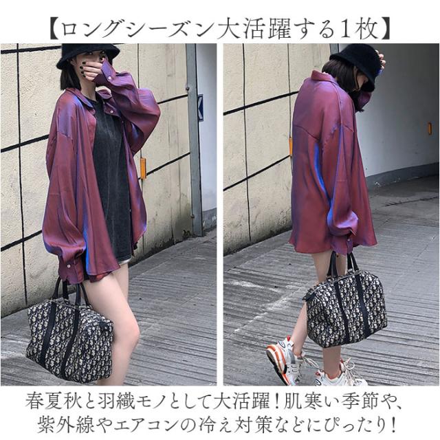 サテンブラウス 長袖 レディース 通販 レディースブラウス 長袖ブラウス ロングシャツ サテン ブラウス カーディガン チュニック シャツ 長袖シャツ 羽織 羽織り 光沢感 レトロ