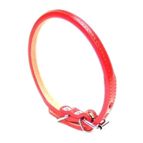 本革を二枚縫い合わせた丸型の毛切れが少ない首輪。天然牛皮製なので静電気が起こりにくい!