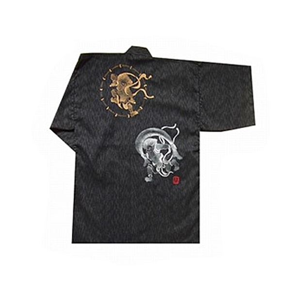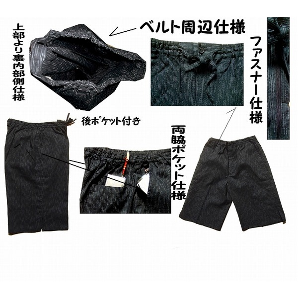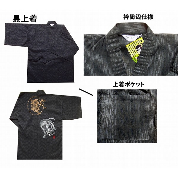 商品仕様: しじら織 甚平 ジンベイ キングサイズ 3L ブラック 黒 風神雷神の手書き絵 綿100% 部屋着 ルームウェア 寝巻 寝間着 パジャマ 夏物