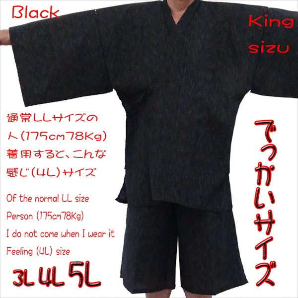 商品仕様: しじら織 甚平 ジンベイ キングサイズ 5L ブラック 黒 風神雷神の手書き絵 綿100% 部屋着 ルームウェア 寝巻 寝間着 パジャマ 夏物