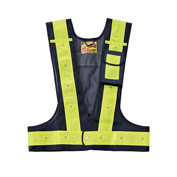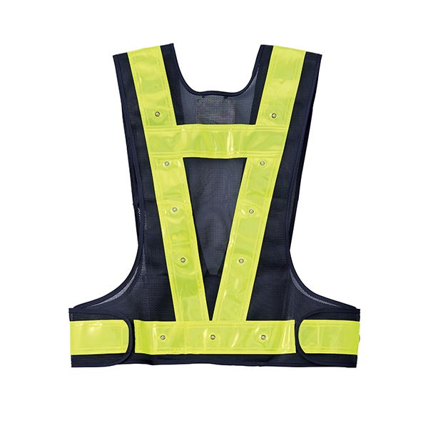 商品仕様: 多機能LEDベスト 多機能LEDベスト-KY-BL (メッシュ部:紺・反射部:黄・LED発光色:赤)