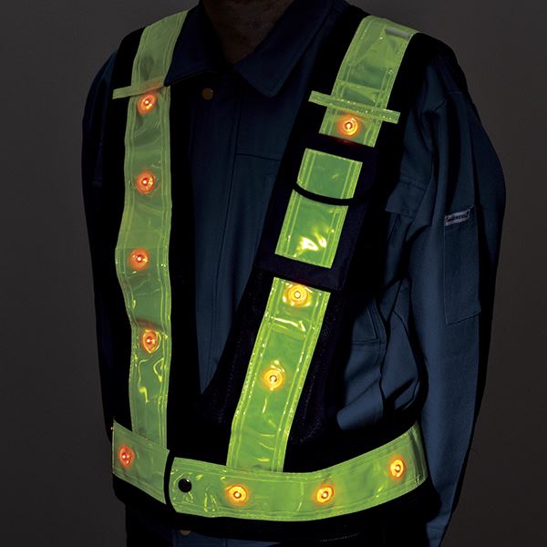 ■多機能LEDベスト 多機能LEDベスト-YY-R (メッシュ部:黄・反射部:黄・LED発光色:赤)