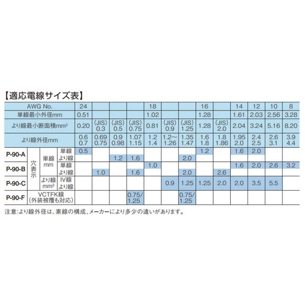 ・適用電線:単線1.0/1.6/2.0/2.6/3.2mmφ