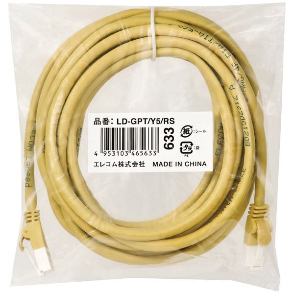 商品仕様: エレコム RoHS指令準拠LANケーブル/CAT6/爪折れ防止/5m/イエロー 黄色/簡易パッケージ LD-GPT/Y5/RS