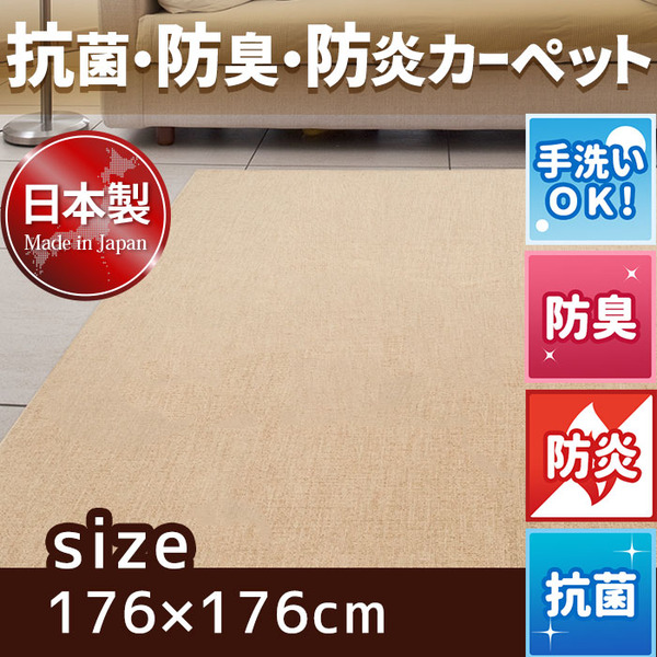 商品仕様: フリーカットができる 抗菌 防臭 防炎カーペット 絨毯 / 江戸間 2畳 176×176cm アイボリー 乳白色 / 洗える 日本製 『ウェルバ』