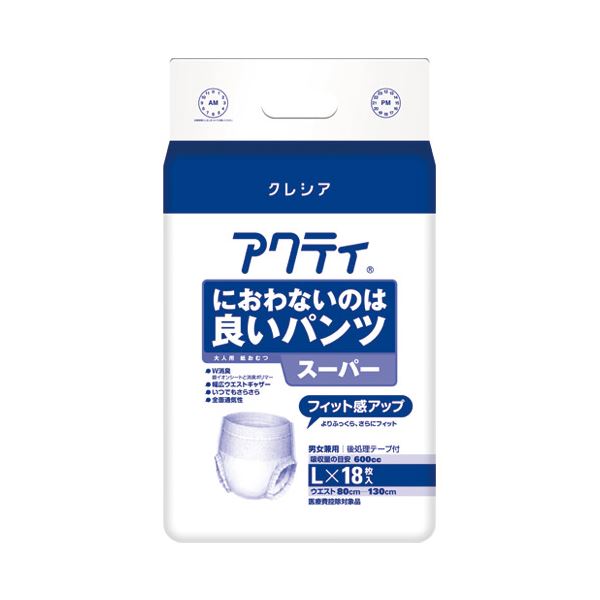 (まとめ) 日本製 国産 紙クレシア アクティ 良いパンツ スーパー L18枚【×2セット】 究極の快適さを追求した、日本製紙クレシアの新たなる進化 驚きの吸収力と柔らかさを兼ね備えた、至高のパンツ スーパー L18枚【×2セット】 送料無料