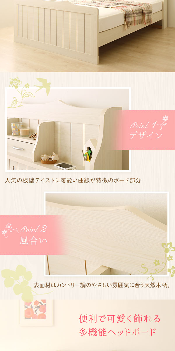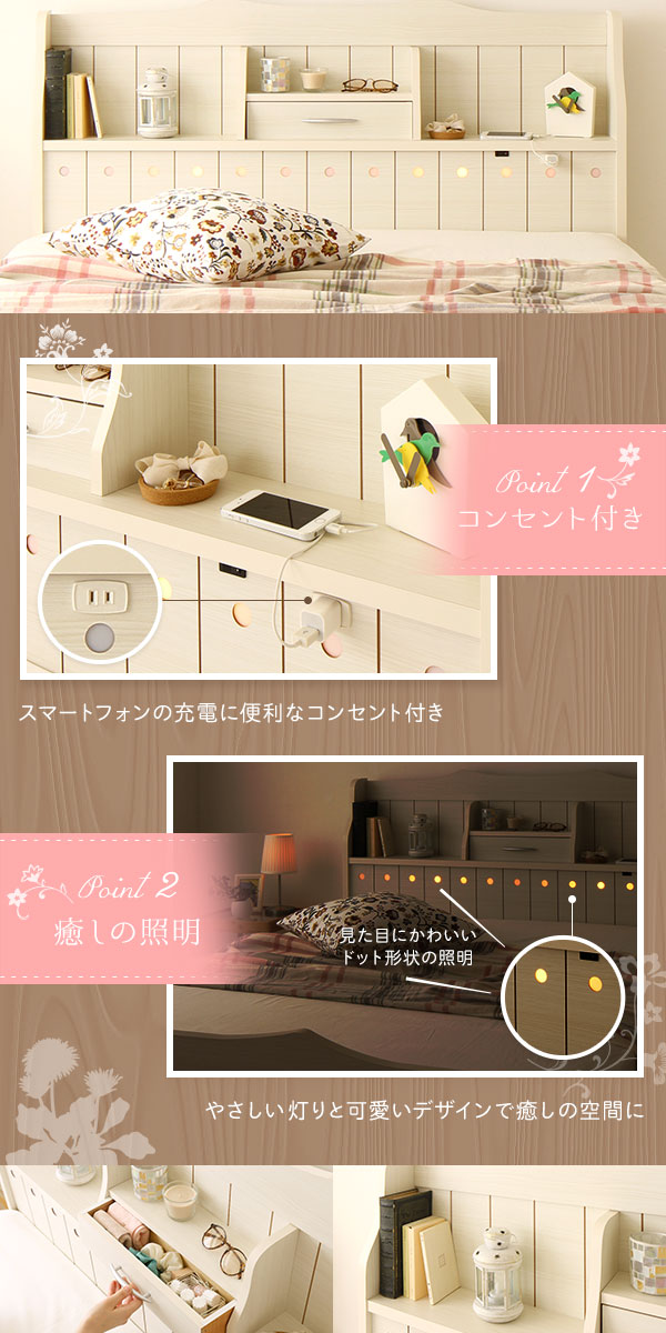 (キーワード: 安眠 健康 睡眠 快適 清潔 高級 流行 デザイン おしゃれ オシャレ 耐久 機能 便利 省スペース 空間 有効活用 オシャレ 可動 駆動 TCC553387 RDA0003533187 6974070 インテリア 寝具 ベッド ロフト システムベッド 収納 システム セミダブルベッド 白 ホワイト 【引き出し別売】 日本製 国産 カントリー調 姫系 ベッド (SGマーク国産 日本製 国産ボンネルコイルマットレス付き) 『エトワール』 白 ホワイト 白 宮付き 照明付き コンセント付き 読書 読書灯 照明 ライト 電気 本 明かり 電灯 コンセント プラグ テーブルタップ 電源 電気 携帯 充電 時計 宮付き 置き台 置台 置き場 置場 物置き 棚付き 枕元 台 小物 ヘッドボード 引出し 衣服 シーツカバー 収納 整理 季節 大きい 大型 2人 夫婦 ゆったり)
