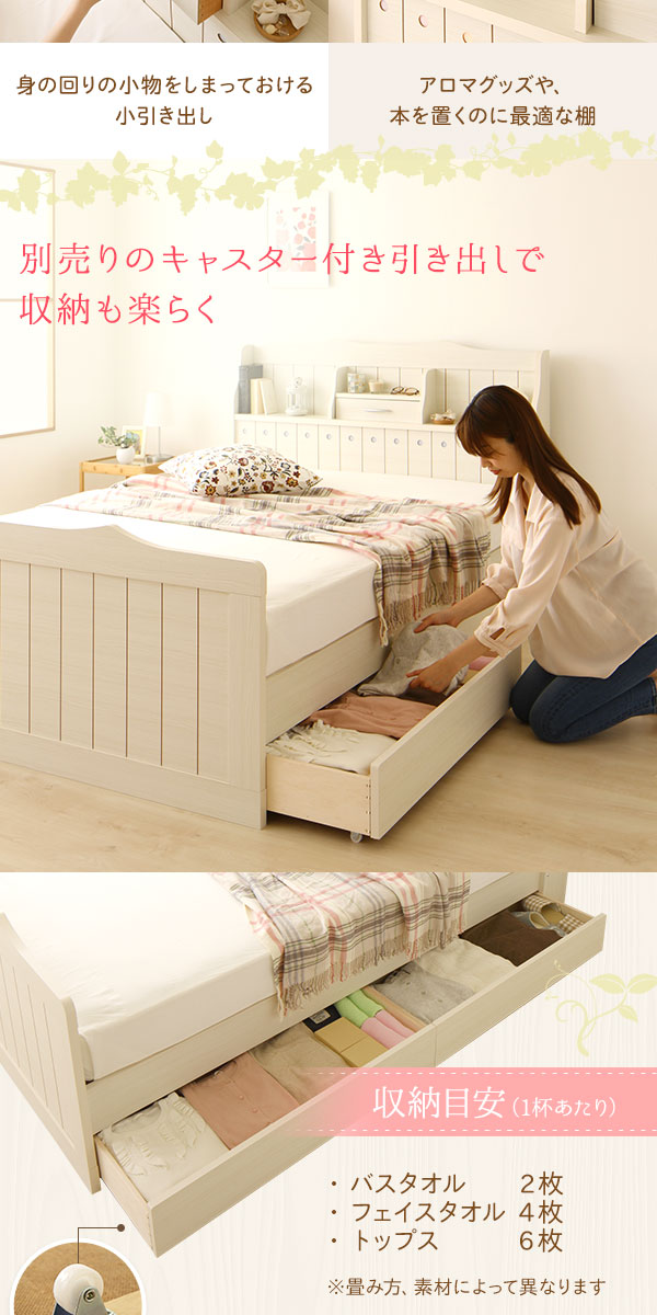 セミダブルベッド 白 ホワイト 【引き出